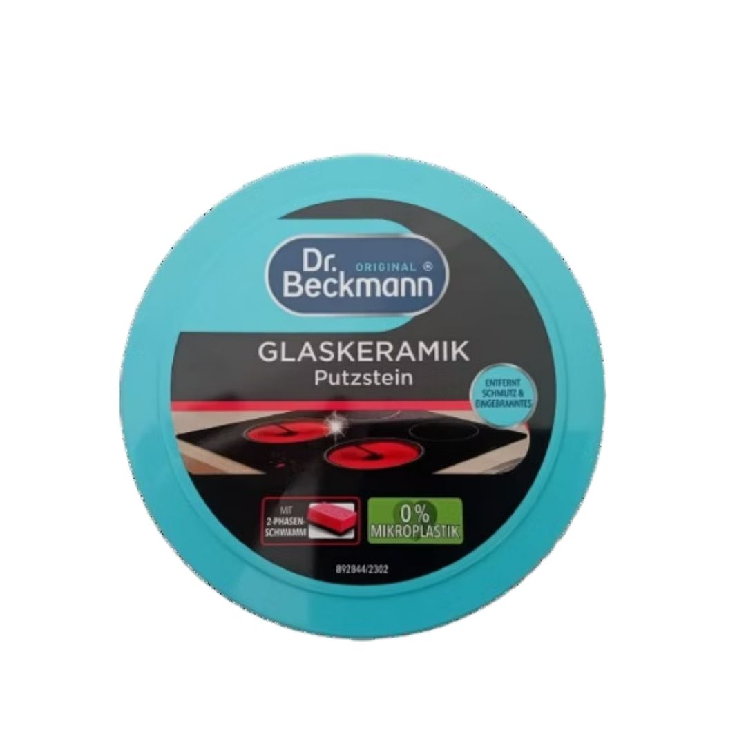 Glaskeramik Dr Beckmann 250 g – preparat w formie pasty, pochodzący z rynku niemieckiego i przeznaczony do czyszczenia płyt indukcyjnych, ceramicznych, piekarników, niepowlekanych garnków czy patelni. Doskonale usuwa najcięższe zabrudzenia, takie jak: zaschnięte plamy, przypalone resztki jedzenia, tłuste plamy, zacieki z wody, ślady palców.