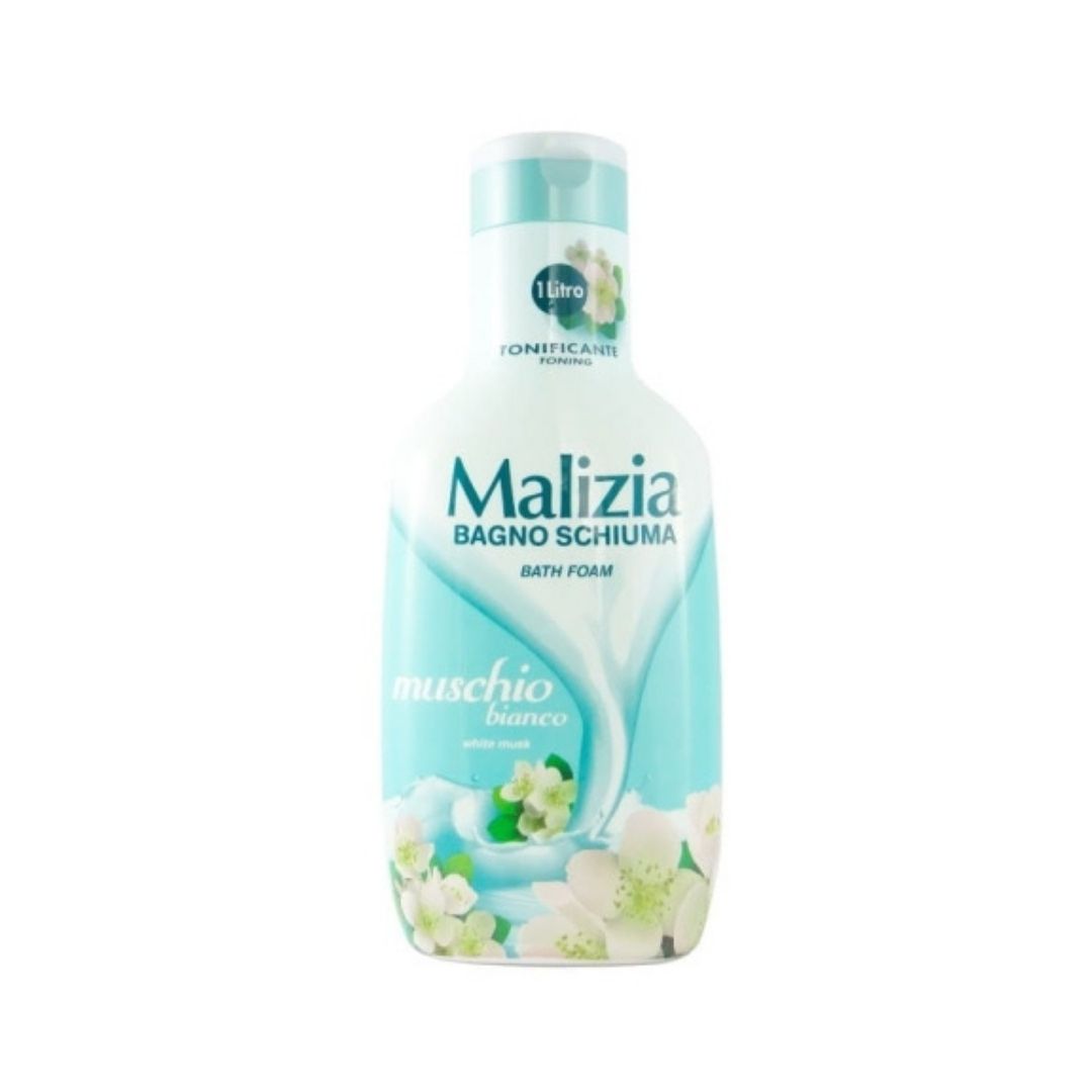 Płyn do kąpieli marki Malizia o wyjątkowym zapachu białego piżma.