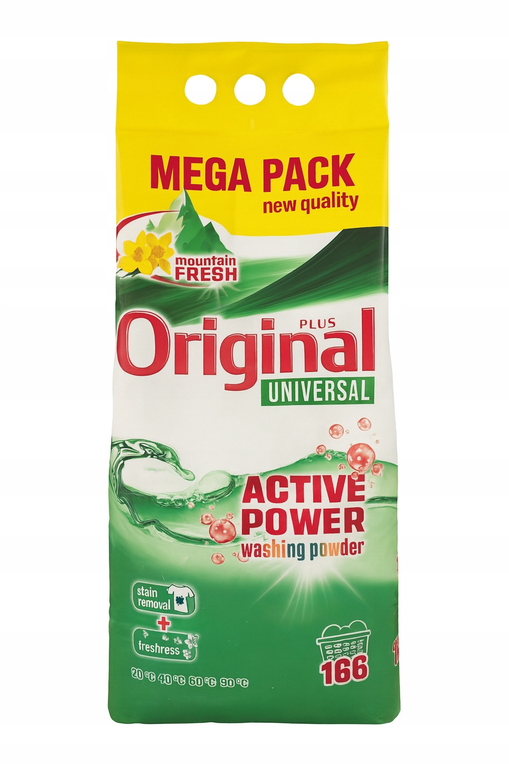 Proszek Original Plus łaczy w sobie dodatkowe składniki aktywne oraz system zmiękczający wodę, dzięki czemu skutecznie pierze już w 30st niezależnie od twardości wody. Zwiększona efektywność prania dzięki większej ilości substancji aktywnych. Uniwersalny proszek do prania tkanin został stworzony w trosce o tkaniny białe i kolorowe. Stosując Original Plus do każdego prania masz pewność, że ubrania będą czyste, a jasne tkaniny nie zszarzeją.