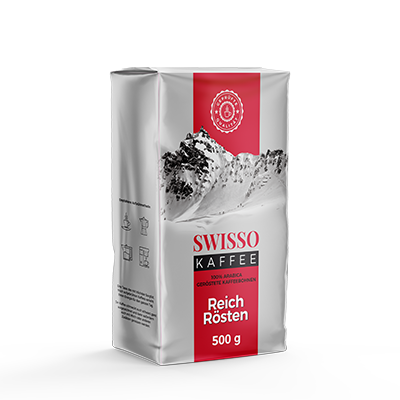 Swisso Kaffee mielona jest to bardzo dobrej jakości mieszanka ziaren Arabiki, z różnych zakątków Afryki. Średni stopień wypalania jest wprost idealny dla wielbicieli delikatnych i zrównoważonych smaków. Swisso Kaffee to średnio palone ziarna o delikatnym zrównoważonym smaku i przyjemnym aromacie, podkreślonym przez cytrusowe nuty – wprost idealne do parzenia ciemnej, mocnej kawy lub też kawy z mlekiem.