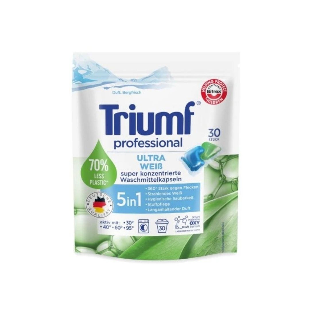 Triumf Ultra Weiß 5in1 to wysoce skoncentrowane, wielokomorowe kapsułki żelowe, stworzone specjalnie do kompleksowej pielęgnacji białych i jasnych tkanin. Dzięki zaawansowanej niemieckiej formule 5w1, produkt nie tylko usuwa najtrudniejsze plamy, ale przede wszystkim przywraca ubraniom nieskazitelną, krystaliczną biel, chroniąc je przed szarzeniem. To idealne rozwiązanie dla osób, które oczekują perfekcyjnych efektów bez konieczności stosowania dodatkowych wybielaczy czy odplamiaczy.