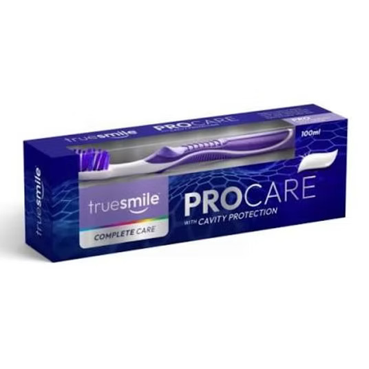 Zestaw Truesmile ProCare został stworzony z myślą o osobach, które pragną dbać o zdrowie dziąseł i zapobiegać ich stanom zapalnym. Pasta zawiera składniki wspierające regenerację i wzmocnienie dziąseł, a także chroniące przed nadwrażliwością.